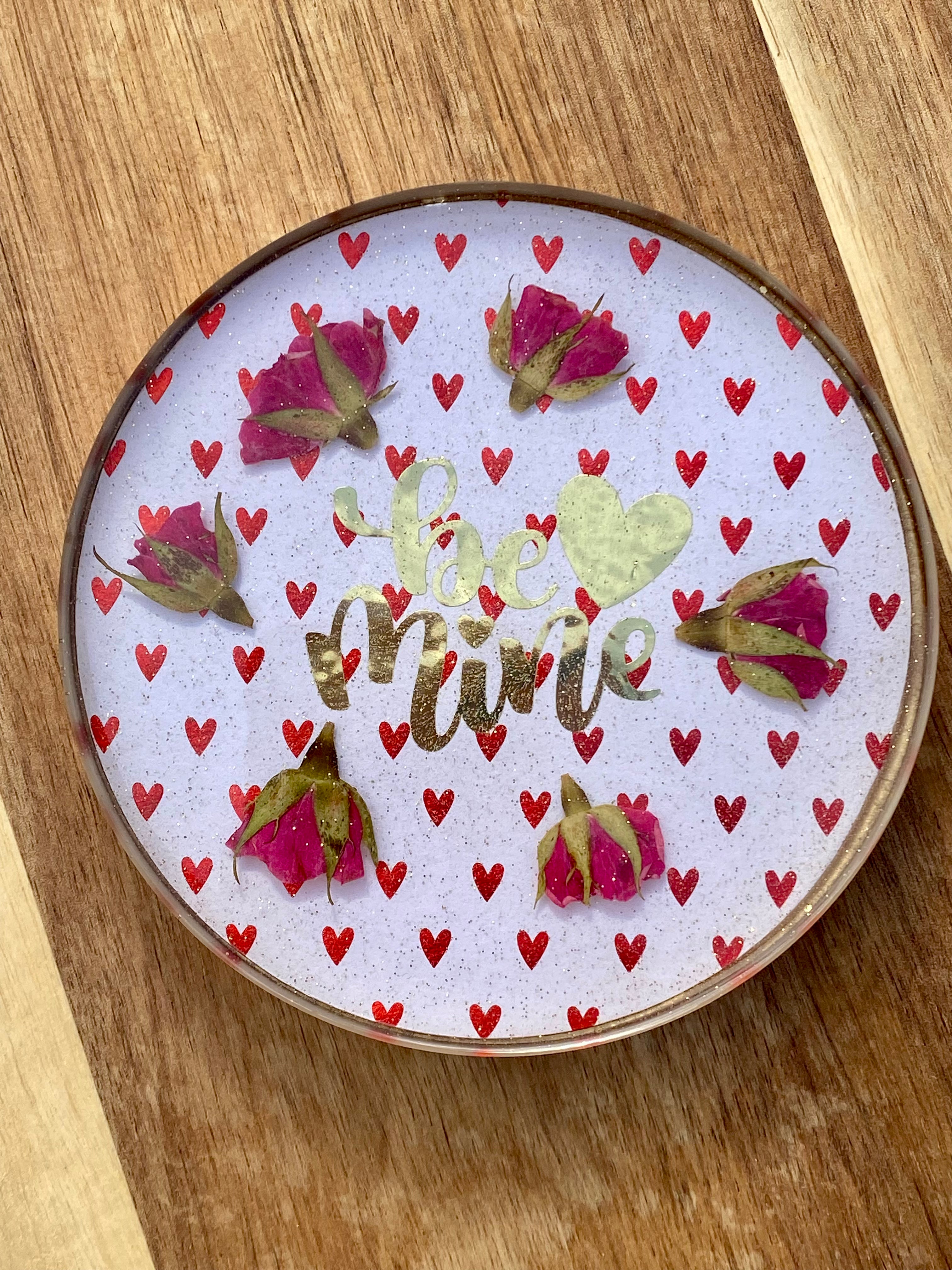 Introducing "Be Mine" from the Luxe Collection! This limited edition Valentine's Day coaster is the perfect gift for you or your significant other. Adorned with red foil hearts, a touch of gold glitter, and roses, this coaster is sure to add a touch of romance to any drink. Go ahead, make it yours!