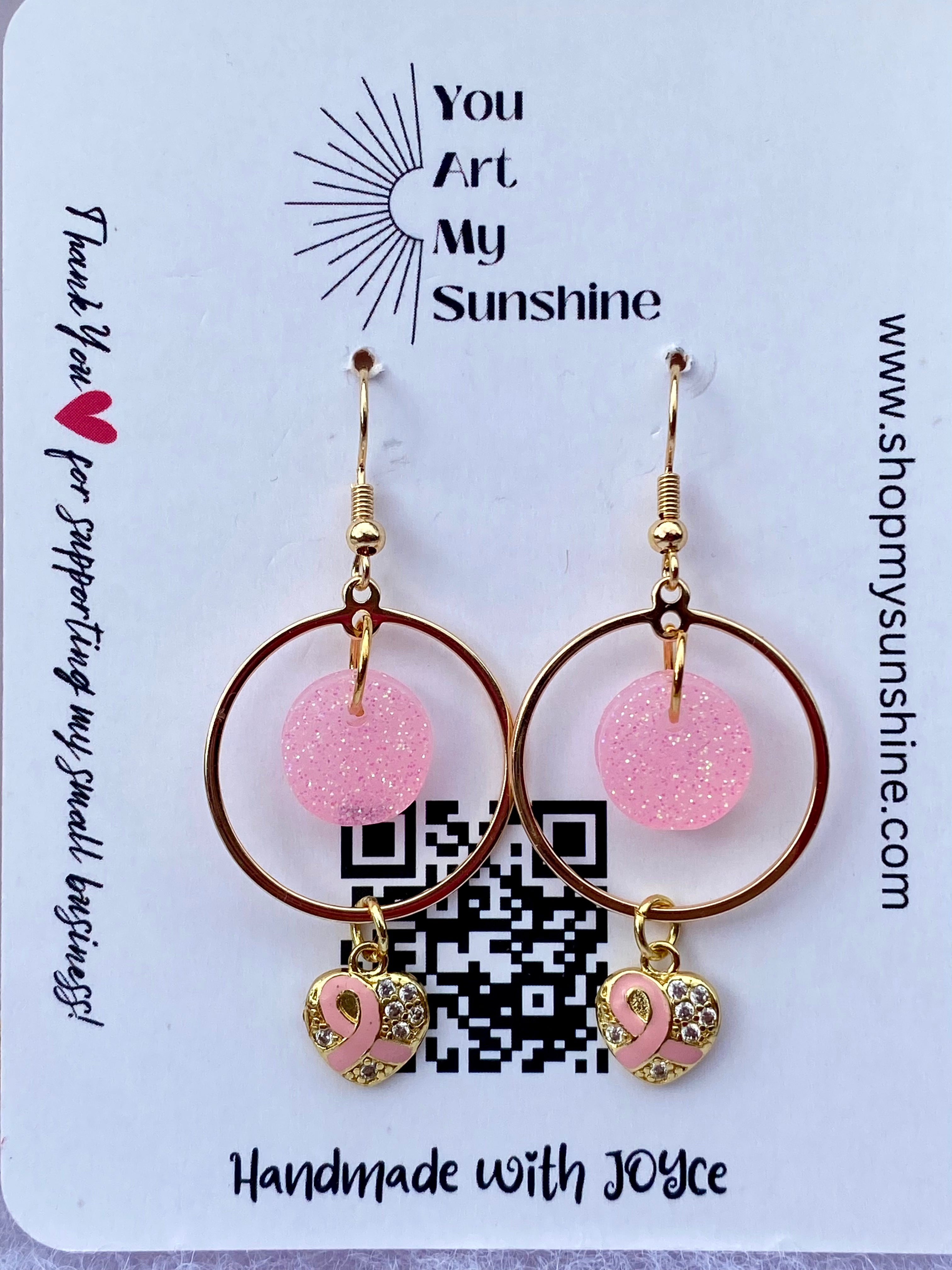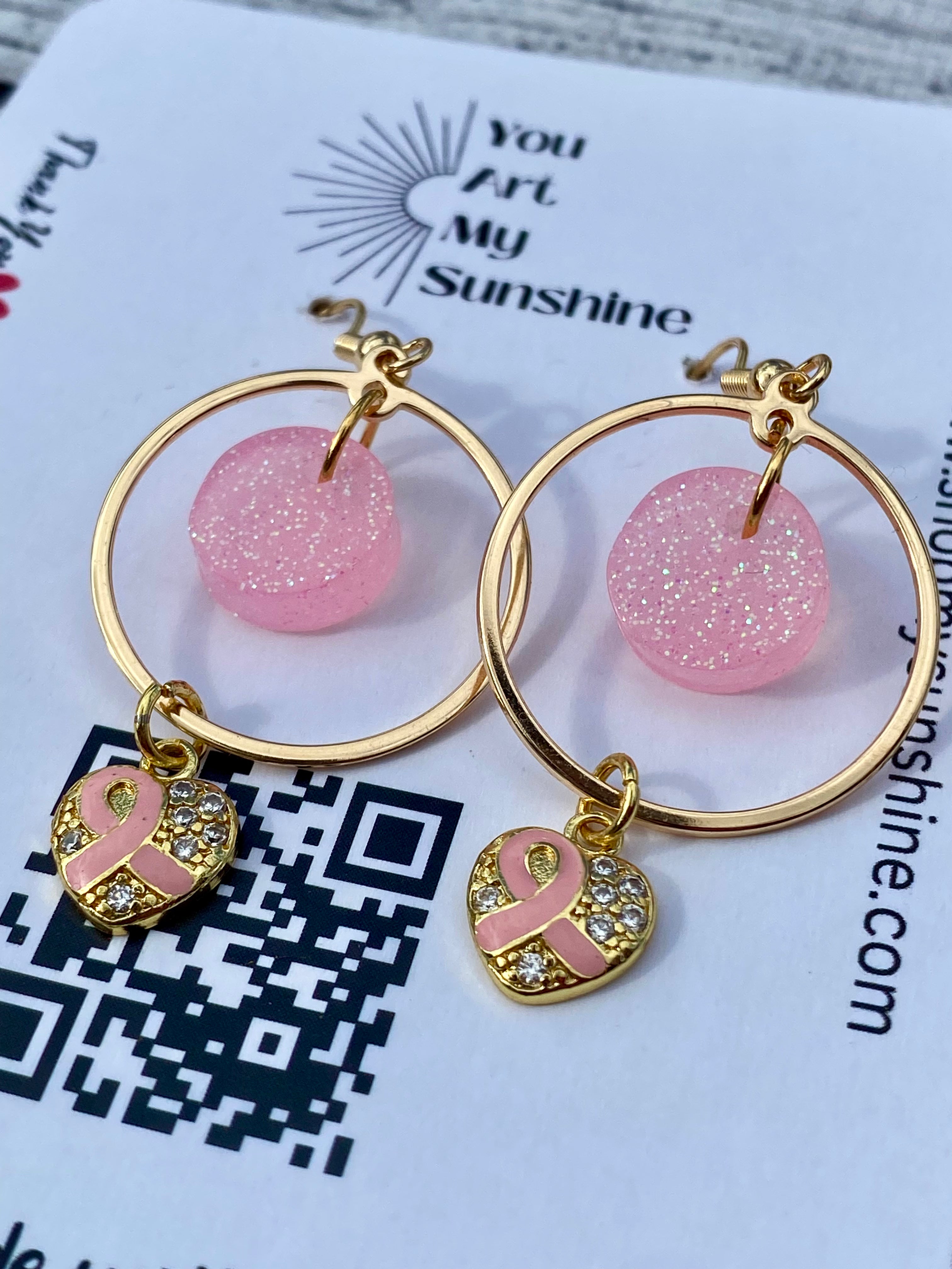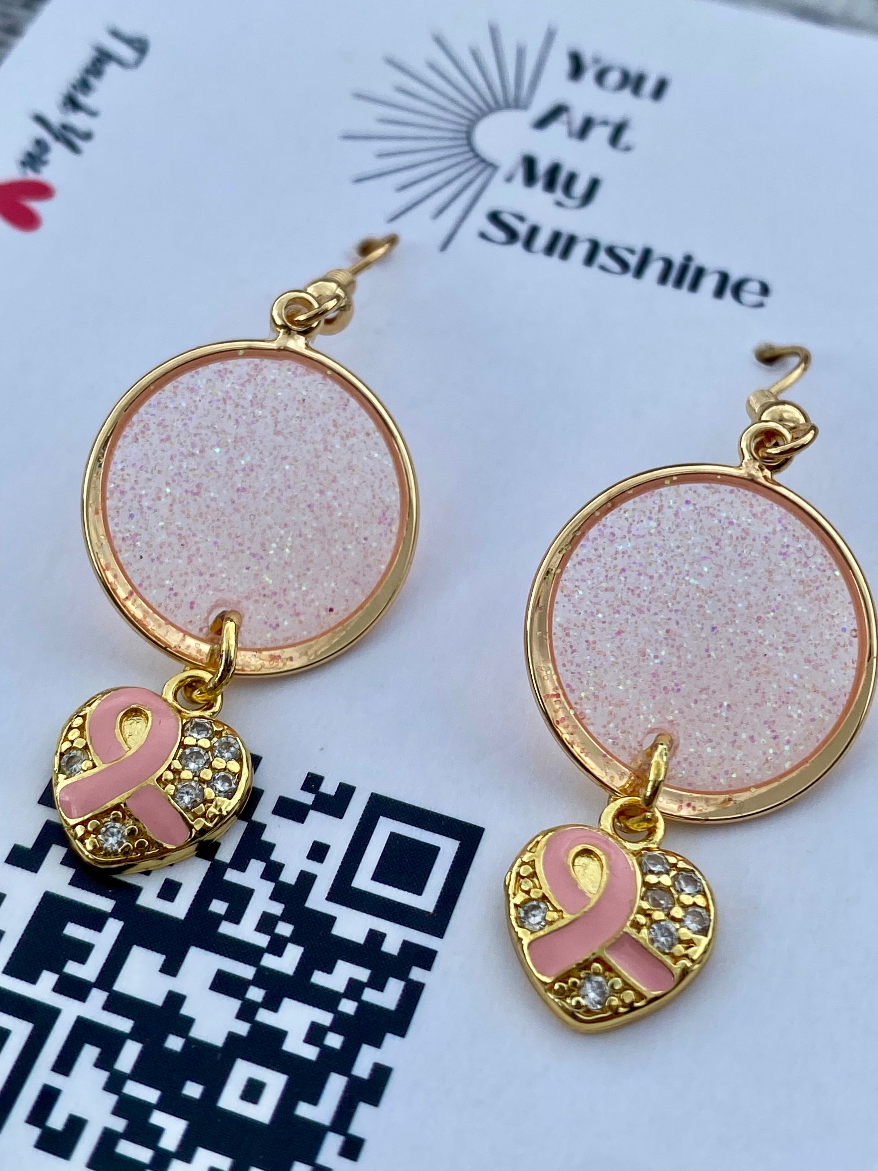 Wear your support for breast cancer awareness with our handmade resin earrings. Featuring sparkly cubic zirconia heart pink ribbon charms, these earrings are perfect for starting conversations and raising awareness. Made with love and care, these pink and shiny earrings are lightweight and comfortable to wear all day long. Show your support and join the fight against breast cancer with these unique and beautiful earrings.