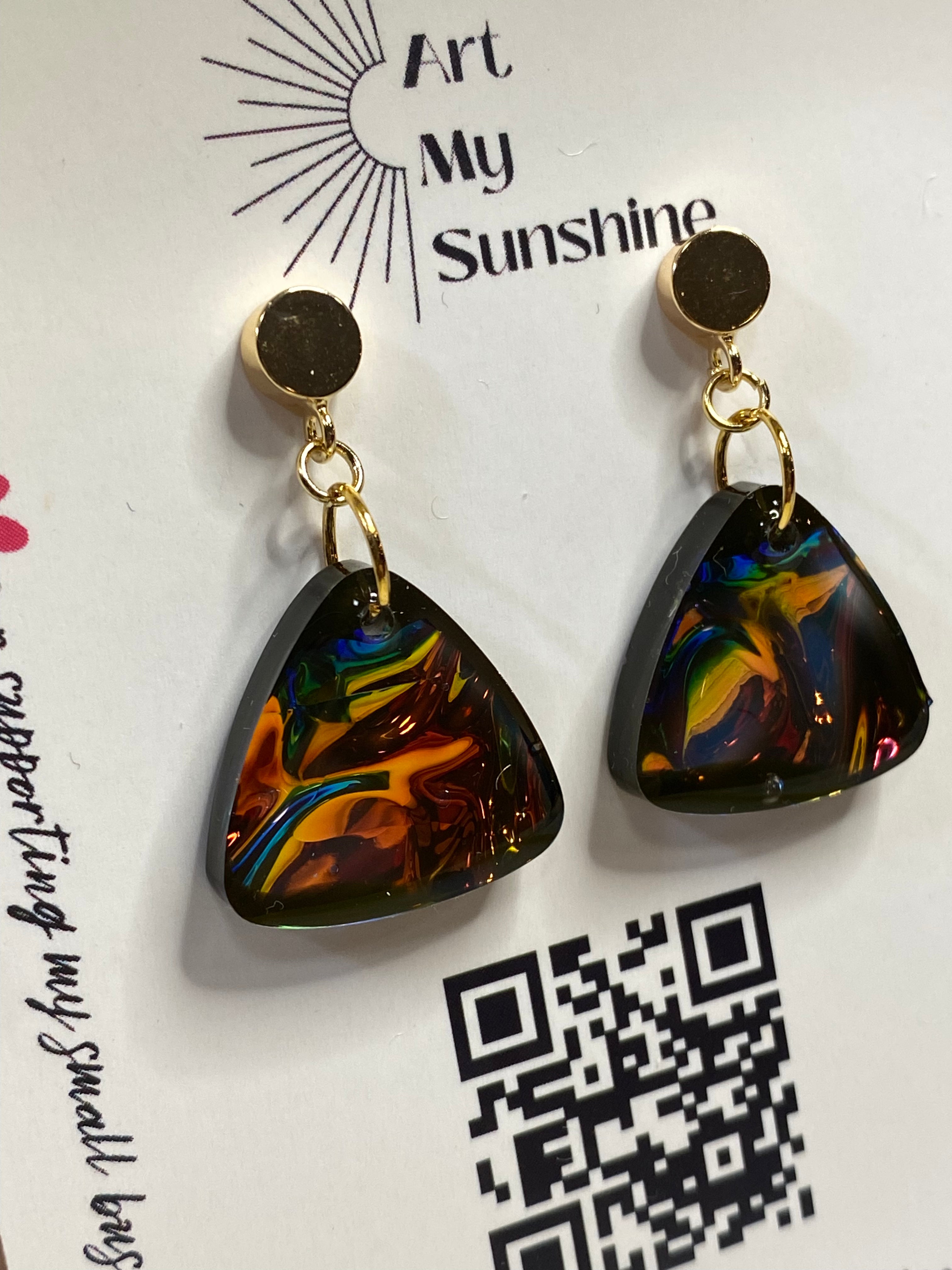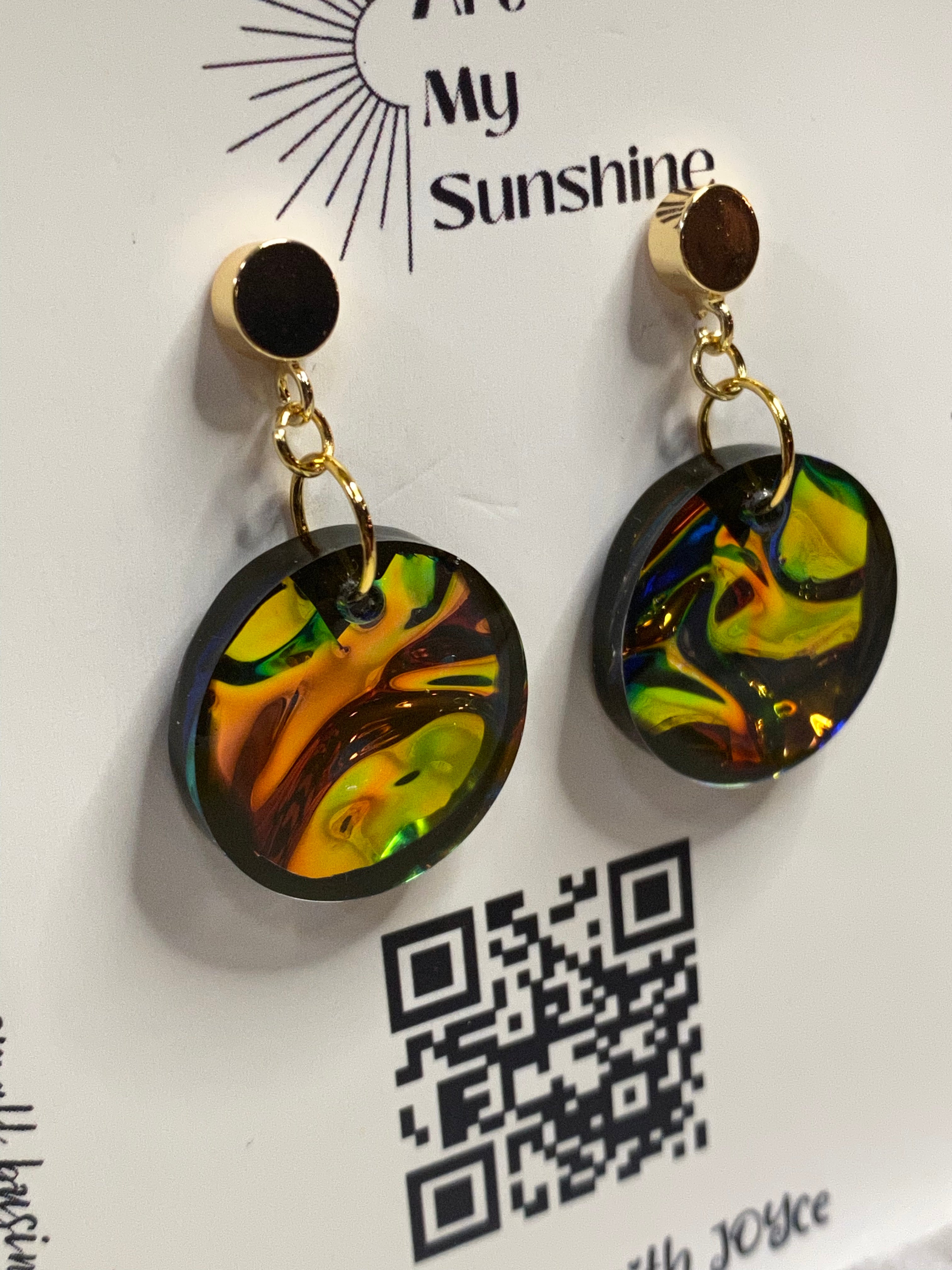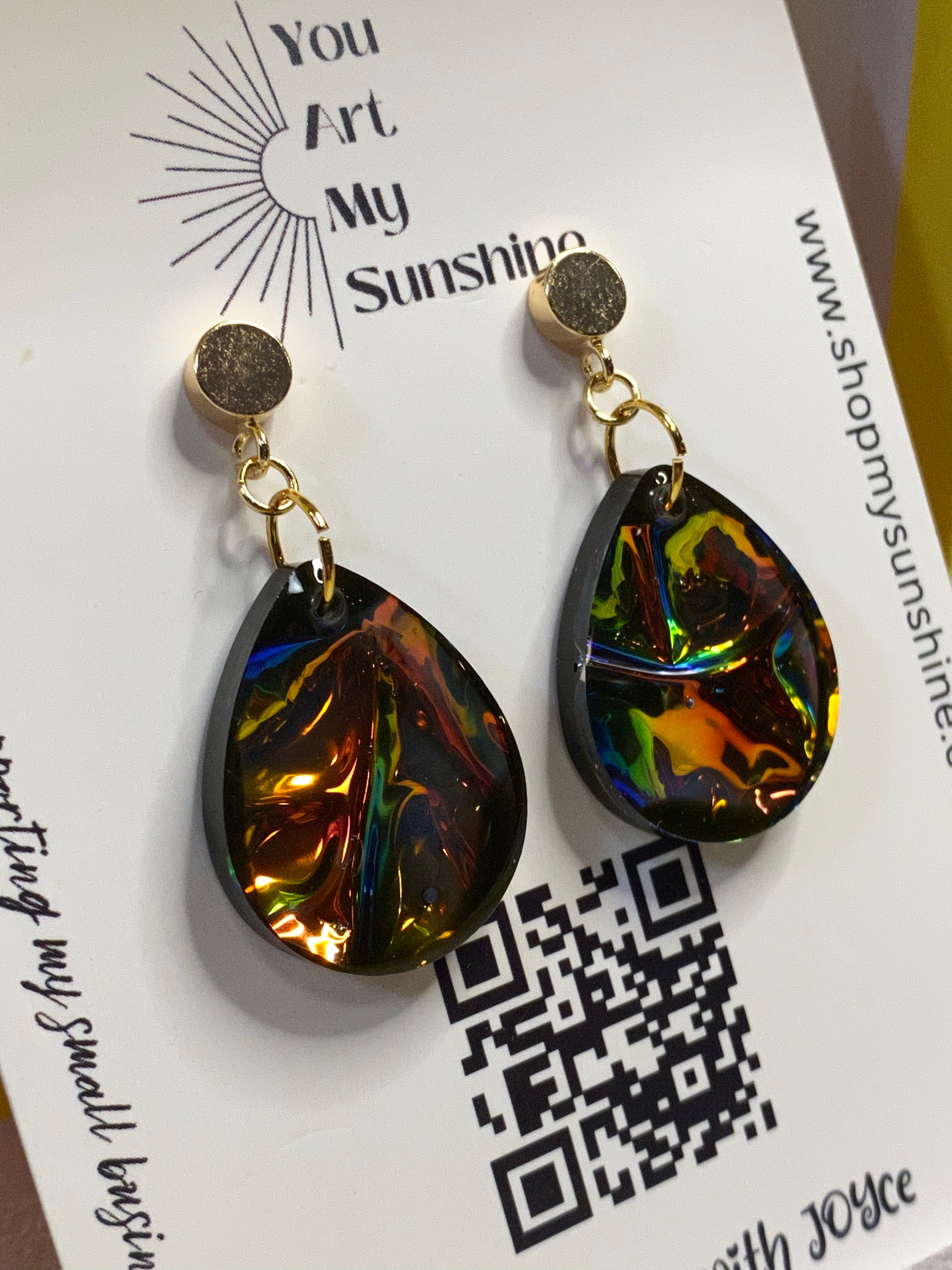 Note: Each piece is one of a kind and no two pair of earrings will look exactly alike. (example: slight variation of color or more glitter) Micro bubbles may be present and do not take away from the beauty of the resin pieces. Although we use high quality resin with UV resistance, all resin ambers over time (turns yellow).