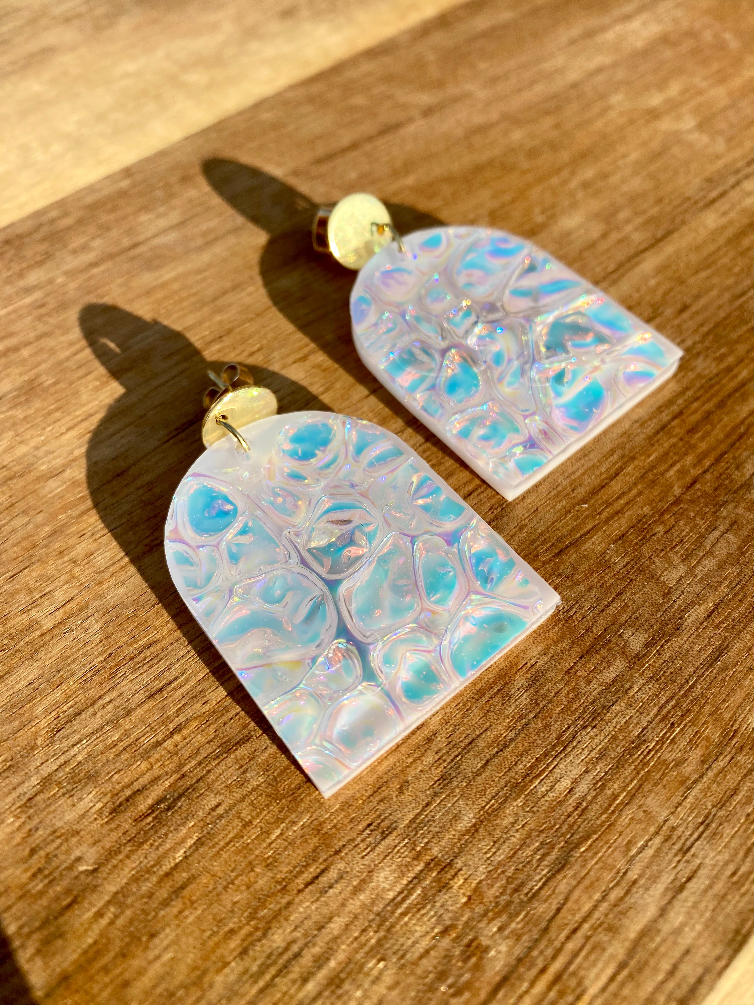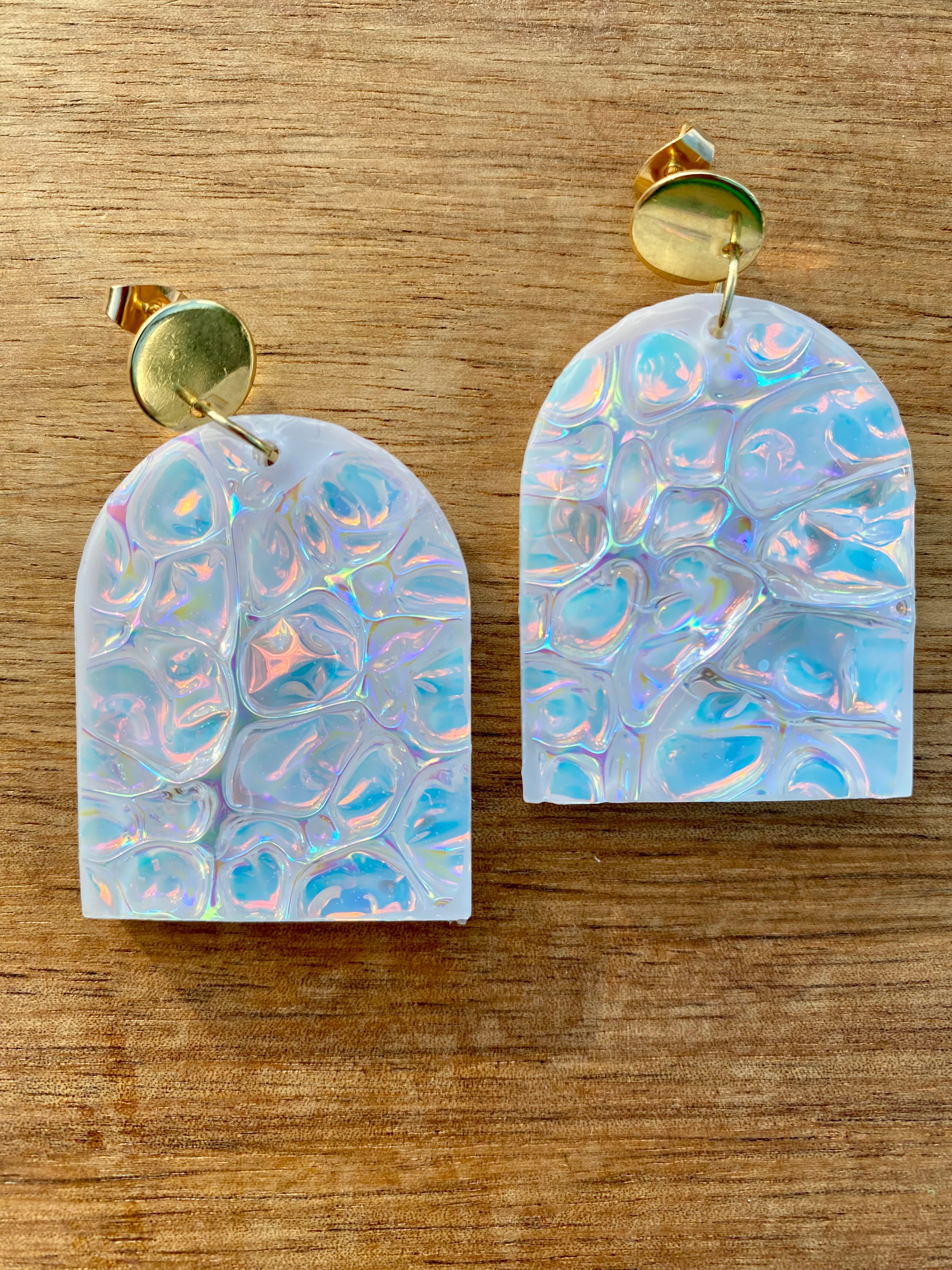 Note: Each piece is one of a kind and no two pair of earrings will look exactly alike. (example: slight variation of color or more glitter) Micro bubbles may be present and do not take away from the beauty of the resin pieces. Although we use high quality resin with UV resistance, all resin ambers over time (turns yellow).