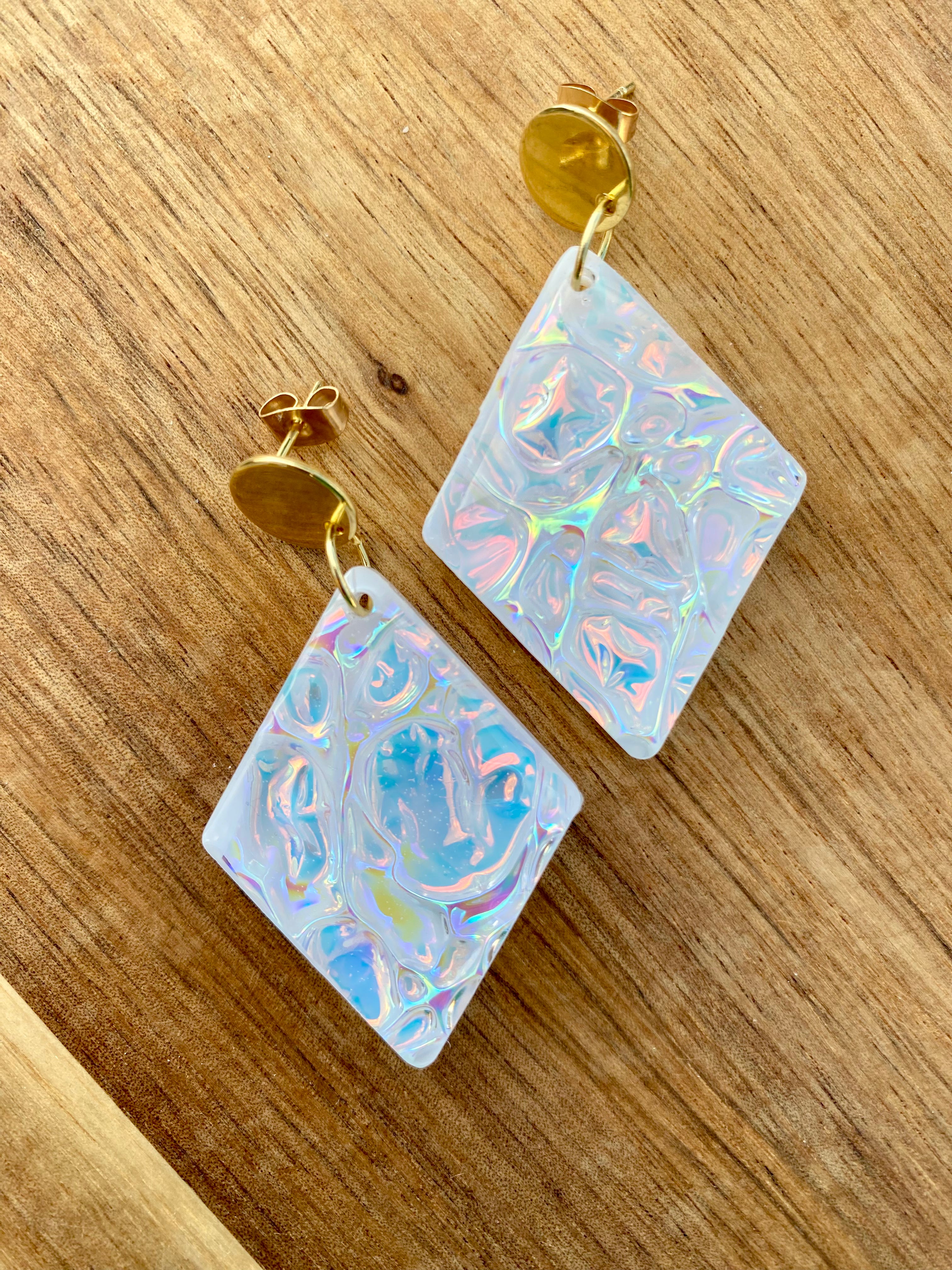 Note: Each piece is one of a kind and no two pair of earrings will look exactly alike. (example: slight variation of color or more glitter) Micro bubbles may be present and do not take away from the beauty of the resin pieces. Although we use high quality resin with UV resistance, all resin ambers over time (turns yellow).